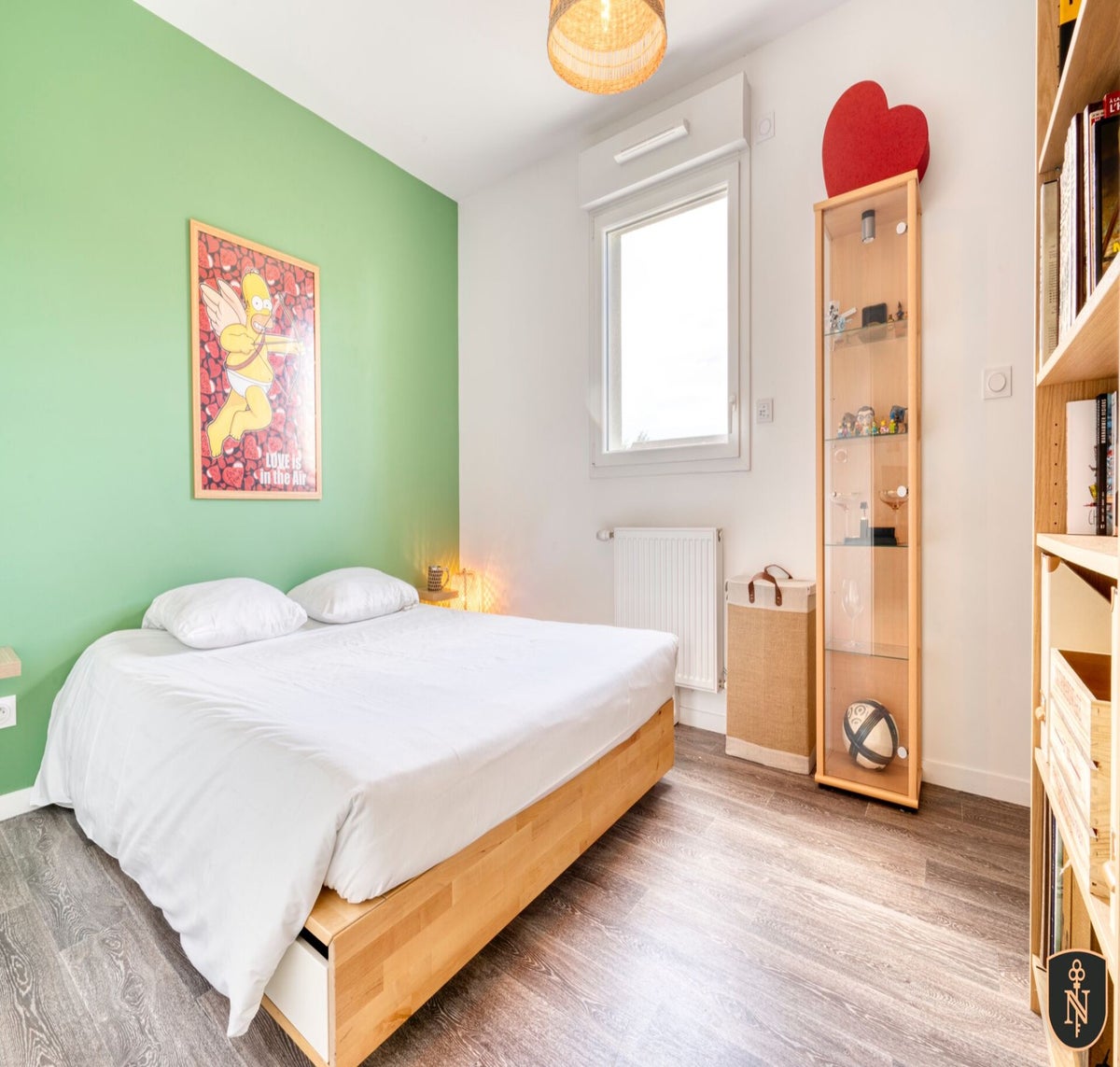 - Chambre et linge : Lave-linge, équipements de base (serviettes, draps, savon, papier toilette), cintres, draps, linge de lit en coton, fer à repasser, étendoir à linge, espace de rangement pour les vêtements