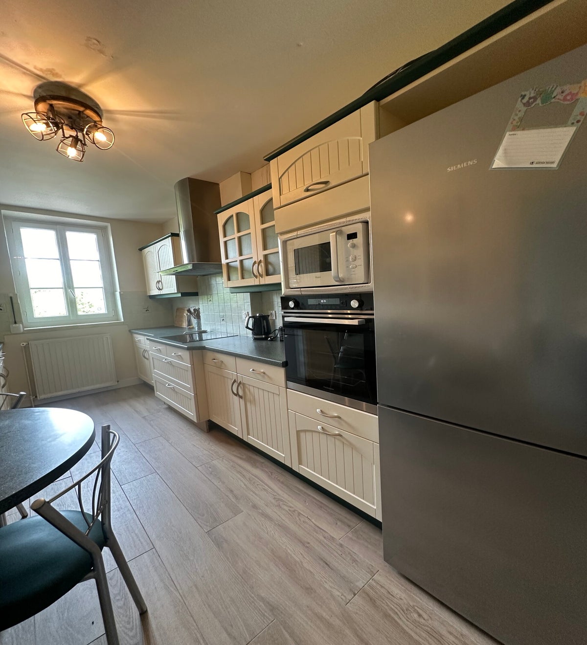 - Cuisine et salle à manger : Cuisine équipée, espace où les voyageurs peuvent cuisiner, congélateur, four, bouilloire électrique, cafetière
