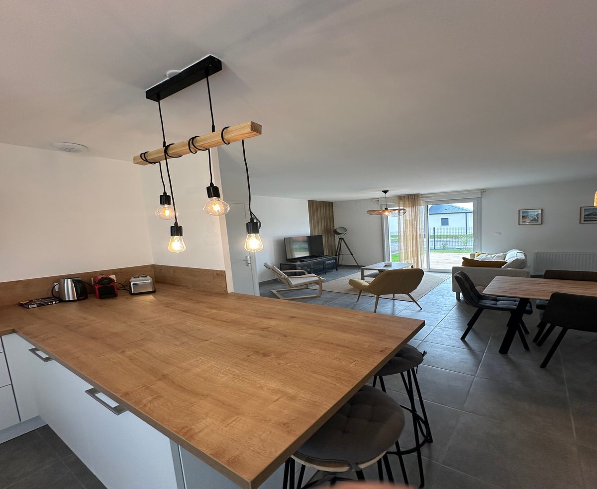 La maison offre tout le confort nécessaire pour des vacances réussies : trois belles chambres décorées avec soin, une salle de bain fonctionnelle, et un grand espace de vie baigné de lumière naturelle, où il fait bon se retrouver pour partager un repas, un jeu de société ou tout simplement profiter d’un moment de calme. La cuisine, entièrement équipée, vous permettra de cuisiner comme à la maison, et le salon invite à la détente après une journée d’exploration. Entre confort, praticité et douceur de vivre, cette maison est une véritable bulle de sérénité, parfaite pour se retrouver et créer de beaux souvenirs.